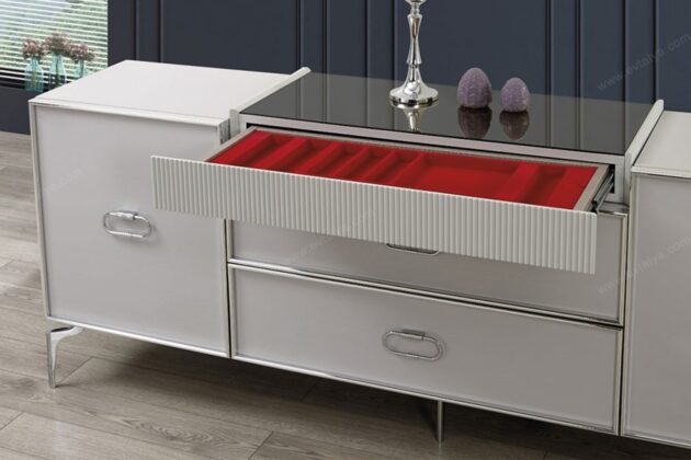 Yemek masası ve konsol kombinasyonu, yemek odasının şıklığını ve düzenini artırır. Konsol, çatal, bıçak ve tabak gibi yemek odası eşyalarını düzenli bir şekilde saklamak için idealdir. Ayrıca, üzerinde süs eşyaları ve aksesuarlarla dekore edilebilir. Yemek masası ve konsol, uyumlu bir tasarım ve renk paletiyle seçilmelidir.